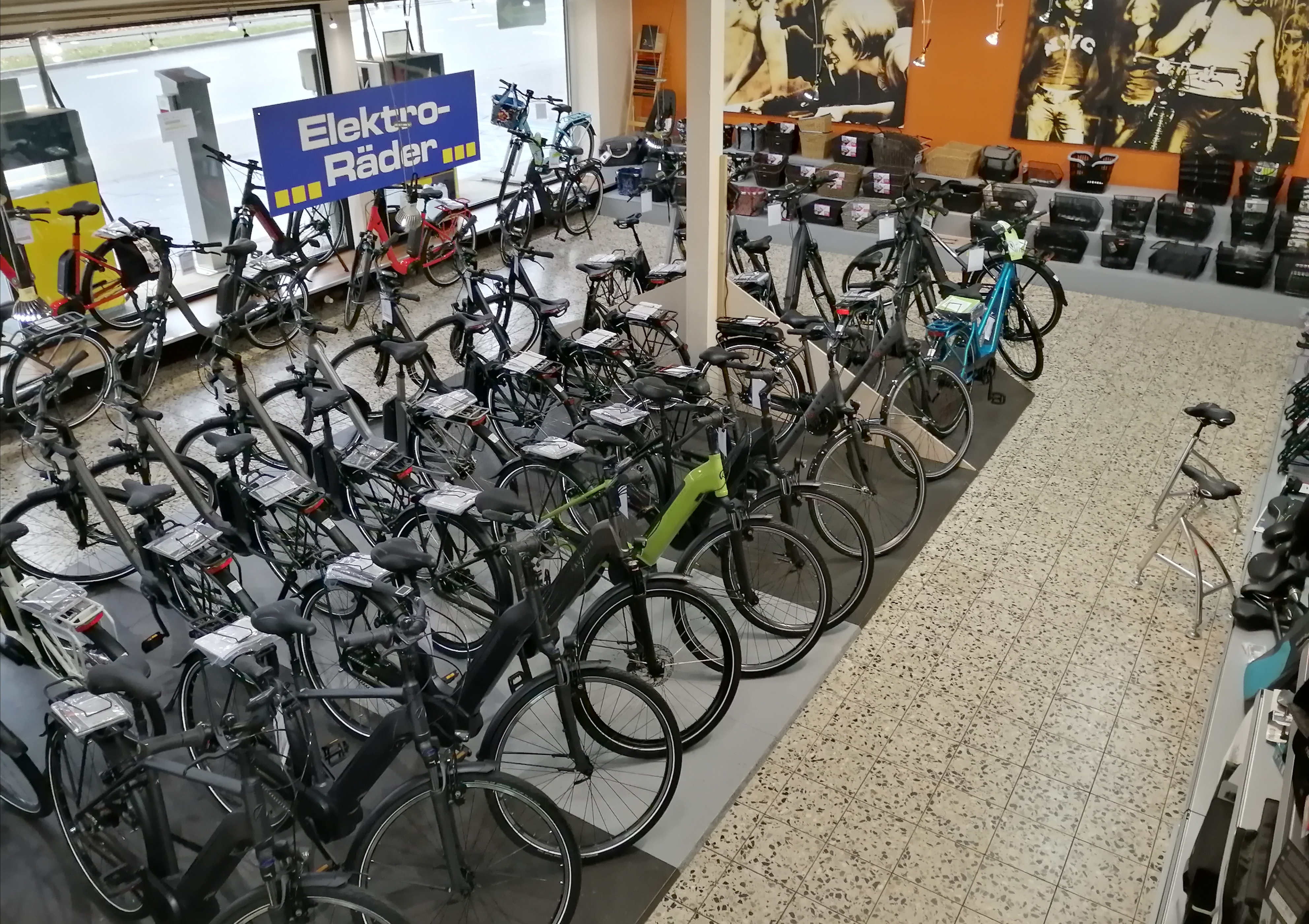 Auf den 500m² Ausstellungs- und Verkaufsfläche finden Sie eine große Auswahl an Fahrrädern, E-Bikes und Fahrradzubehör für jede Altersgruppe. Viele namhafte Marken und Modelle sind hier vertreten. Unter fachkundiger Beratung können Sie sich in Ruhe Ihr Wunschfahrrad aussuchen - optimal angepasst an Ihre Bedürfnisse und Ergonomie. Eine Probefahrt darf dabei nicht fehlen. In unserer Fach-Werkstatt bieten wir unseren Kunden umfassenden Service und Reparatur rund um das Fahrrad und E-Bike an."